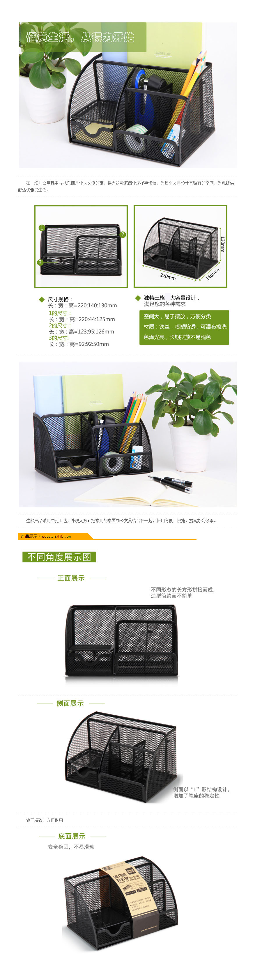 品名:得力(deli) 笔筒 9200 金属网纹 多功能组合 黑色