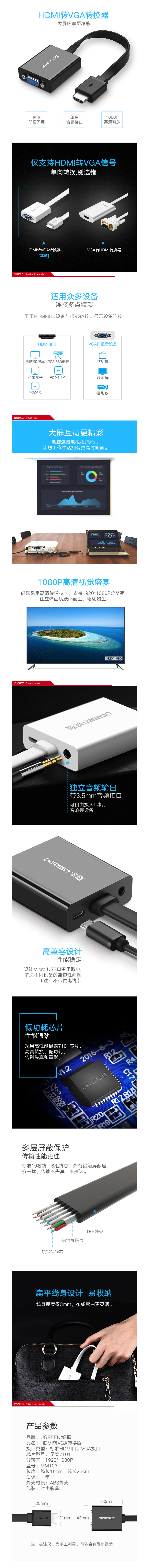 品名:绿联(UGREEN) 转换器 40248 HDMI转VGA 带音频口 黑色