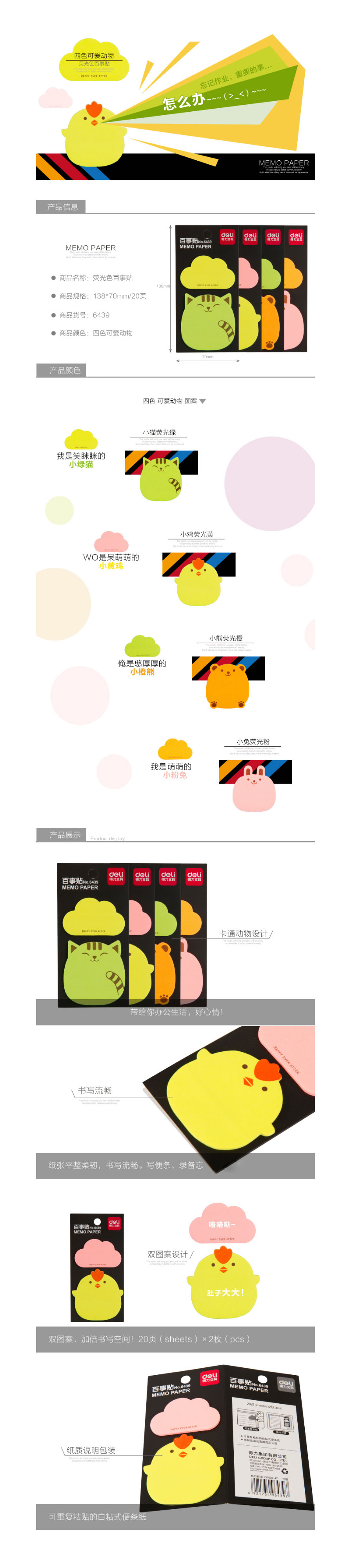 品名:得力(deli) 百事贴 6439 138*70mm 20页/包 荧光