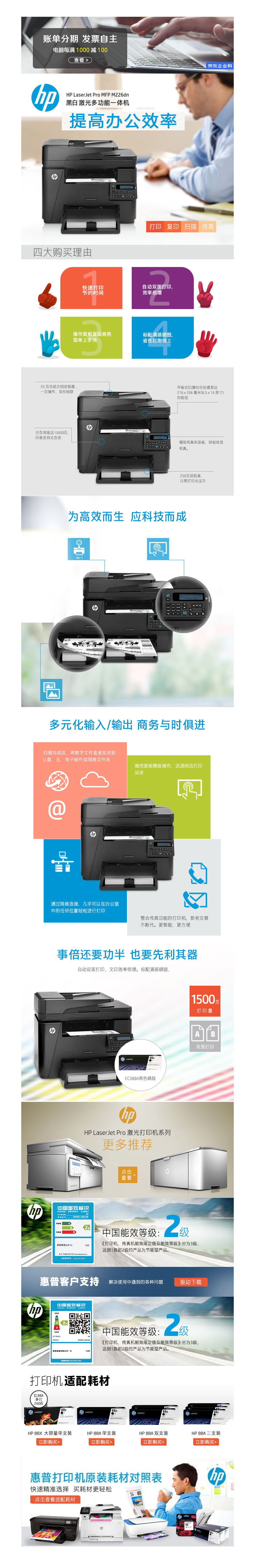 品名:惠普(HP) 打印机 LaserJetM226dn 黑白激光 多功能一体机
