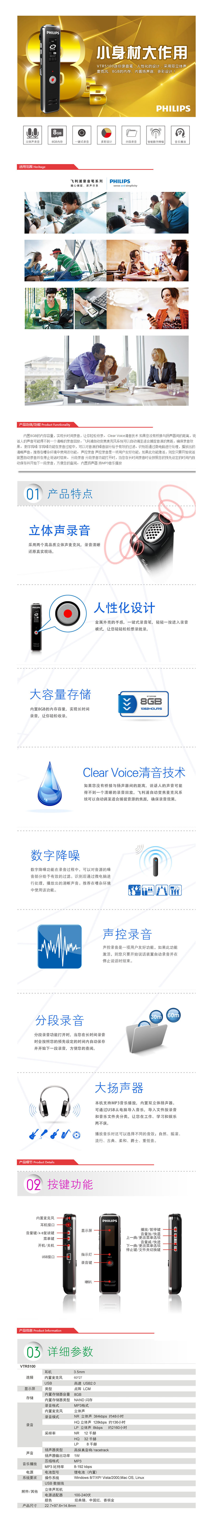 品名:飞利浦(PHILIPS) 录音笔 VTR5100 8GB 经典锖