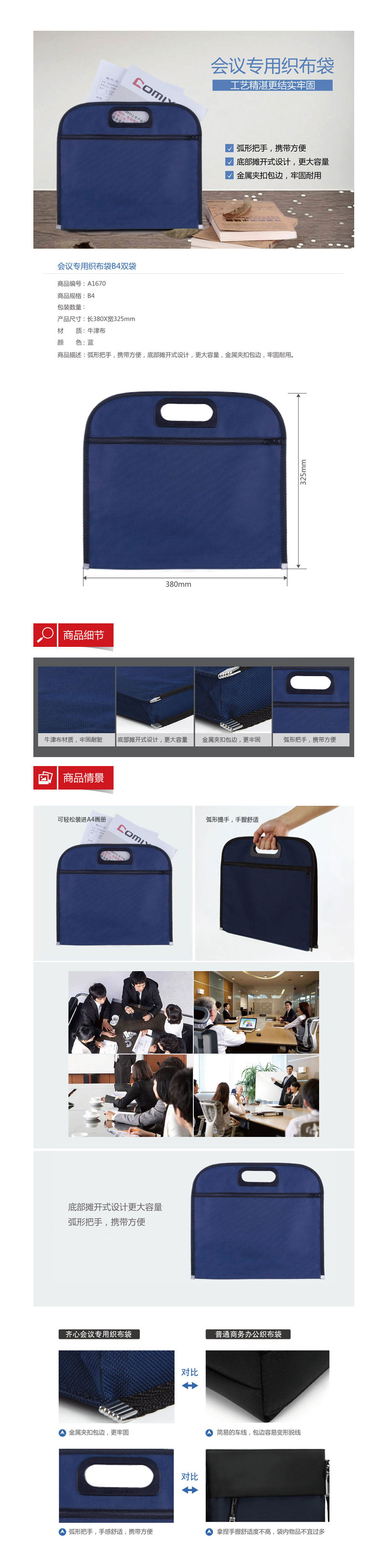 品名:齐心(COMIX) 办公袋 A1670 380*325mm B4牛津布 黑色 蓝色 颜色随机