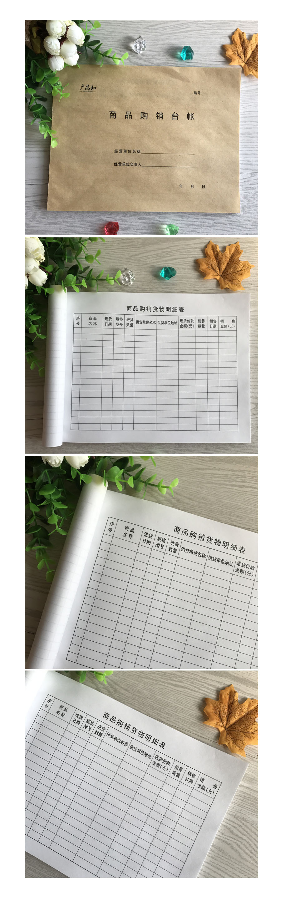 规格:190*260mm 16K 40张/本(38张内页+2张封面) 商品购销台帐 出入库登记本