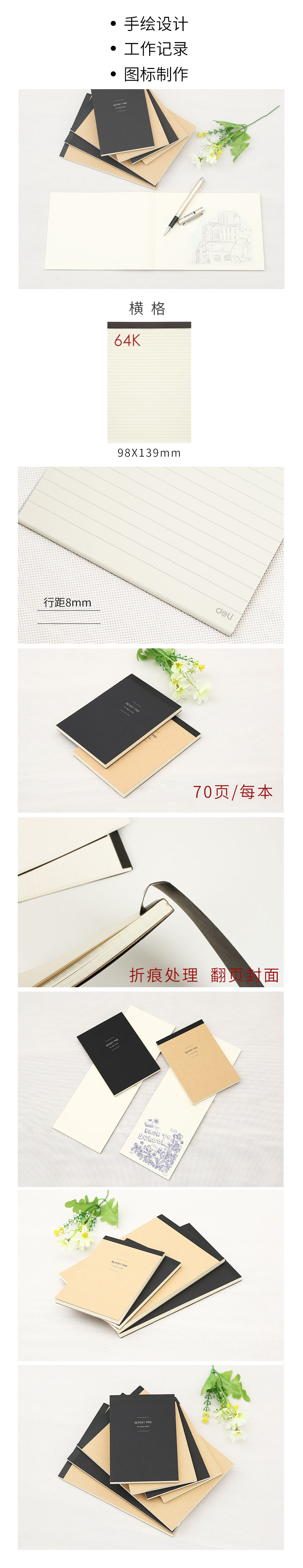 品名:得力(deli) 便签本 21712 64K 70页 横线 黑棕(混)