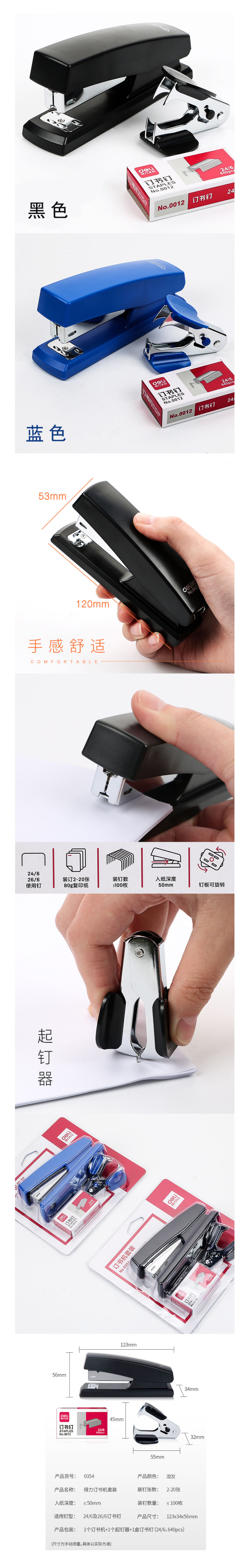 品名:得力(deli) 订书机套装 0354 订书机+订书钉+起钉器 颜色混发
