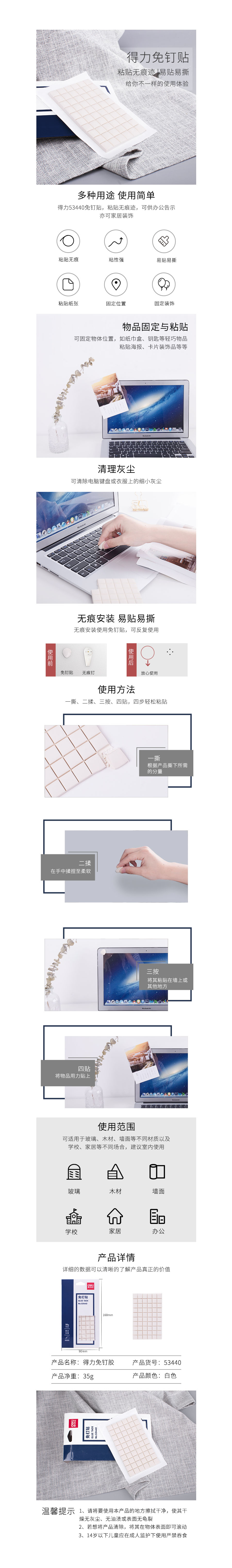 品名:得力(deli) 蓝丁胶 53440 白色 免钉贴