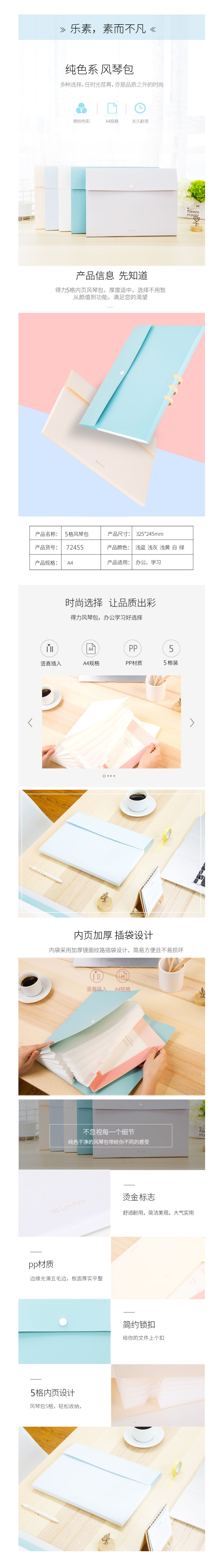 品名:得力(deli) 风琴包 72455 浅灰 5格便携式 33*24.5*1.5cm