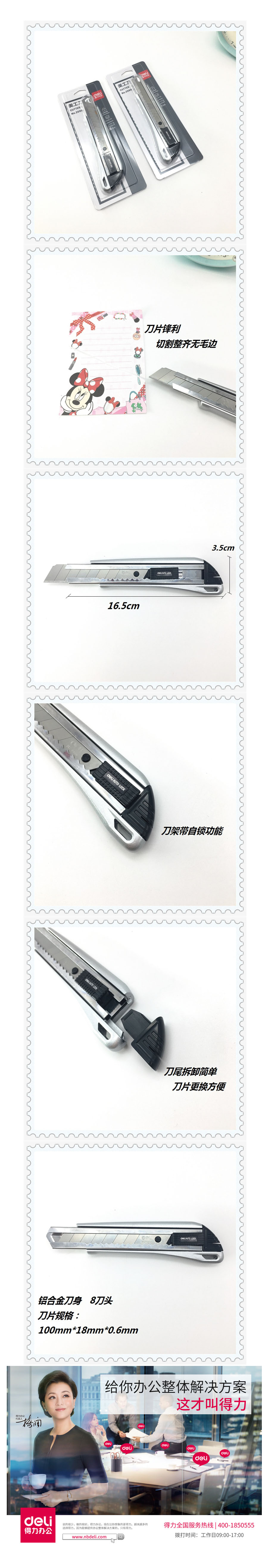 得力(deli) 美工刀 2041S 大号 0.5*18*100mm 带...
