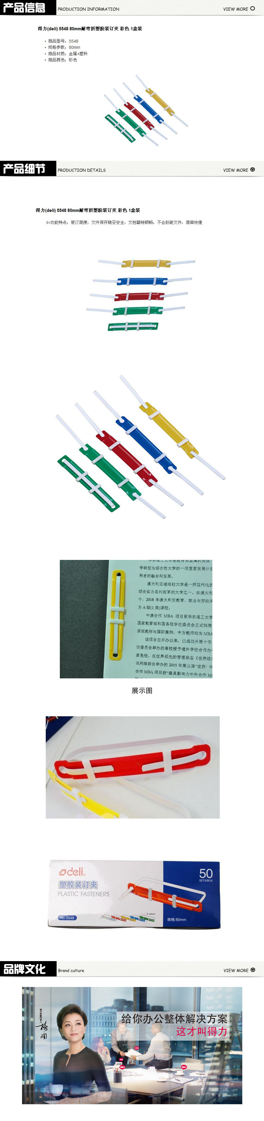 品名:得力(deli) 塑胶装订夹 5548 80mm