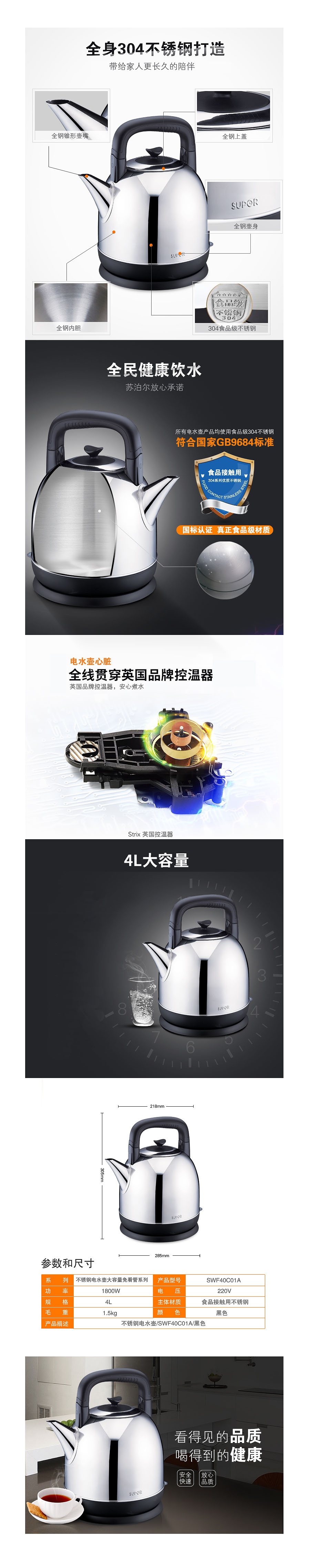 品名:苏泊尔(SUPOR) 水壶 SWF40C01A 4L 不锈钢