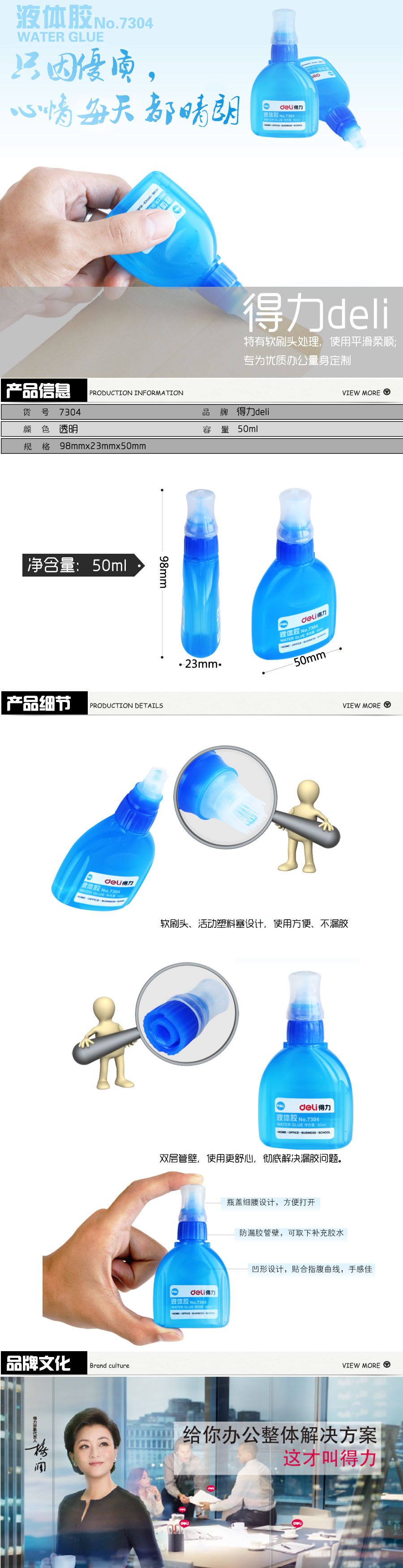 品名:得力(deli) 手工液体胶水 7304 带刷头 50ml