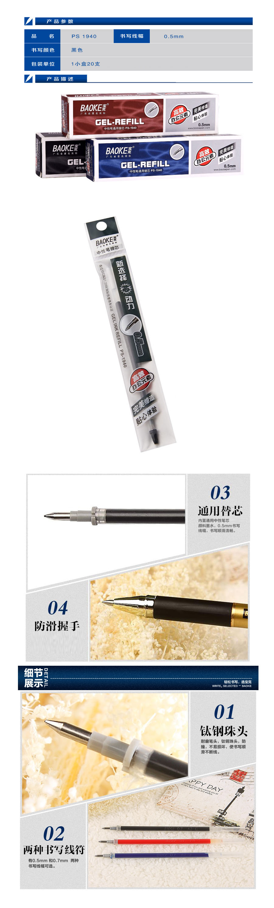 品名:宝克 笔芯 1940 0.5mm 黑色 子弹头