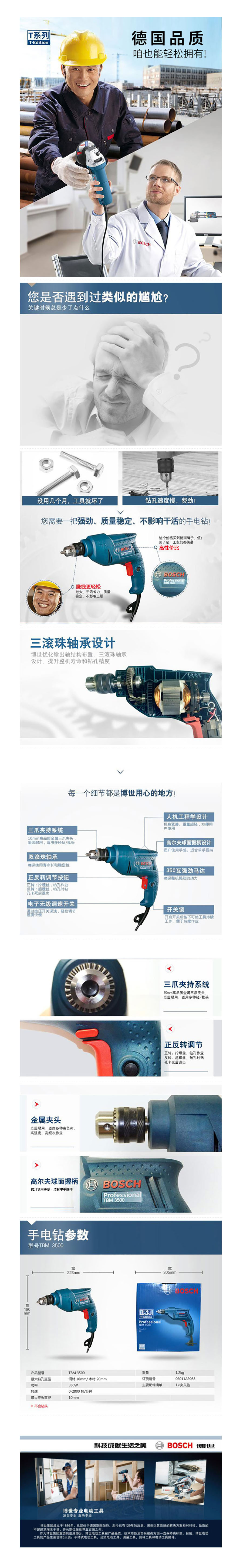 博世(BOSCH) 电钻 TBM 3500 手电钻 350W