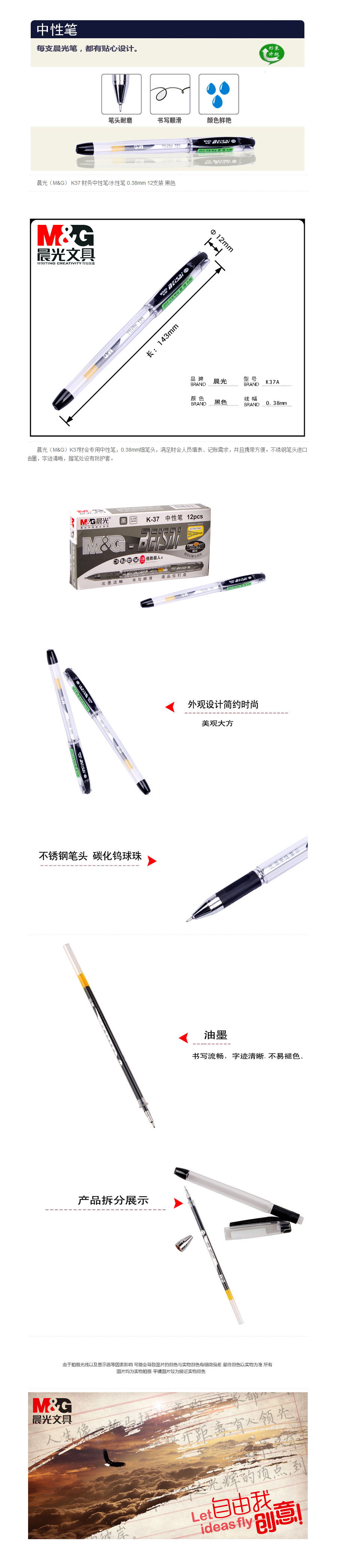 品名:晨光(M&G) 中性笔 K37 0.38mm 黑色