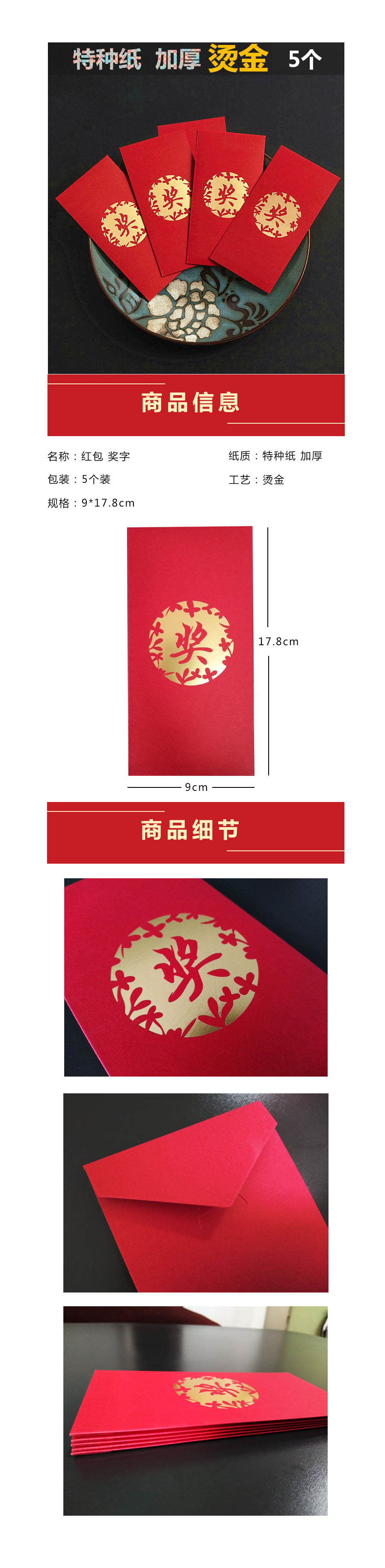 品名:国产 红包 5个/组 奖字 9*17.8cm