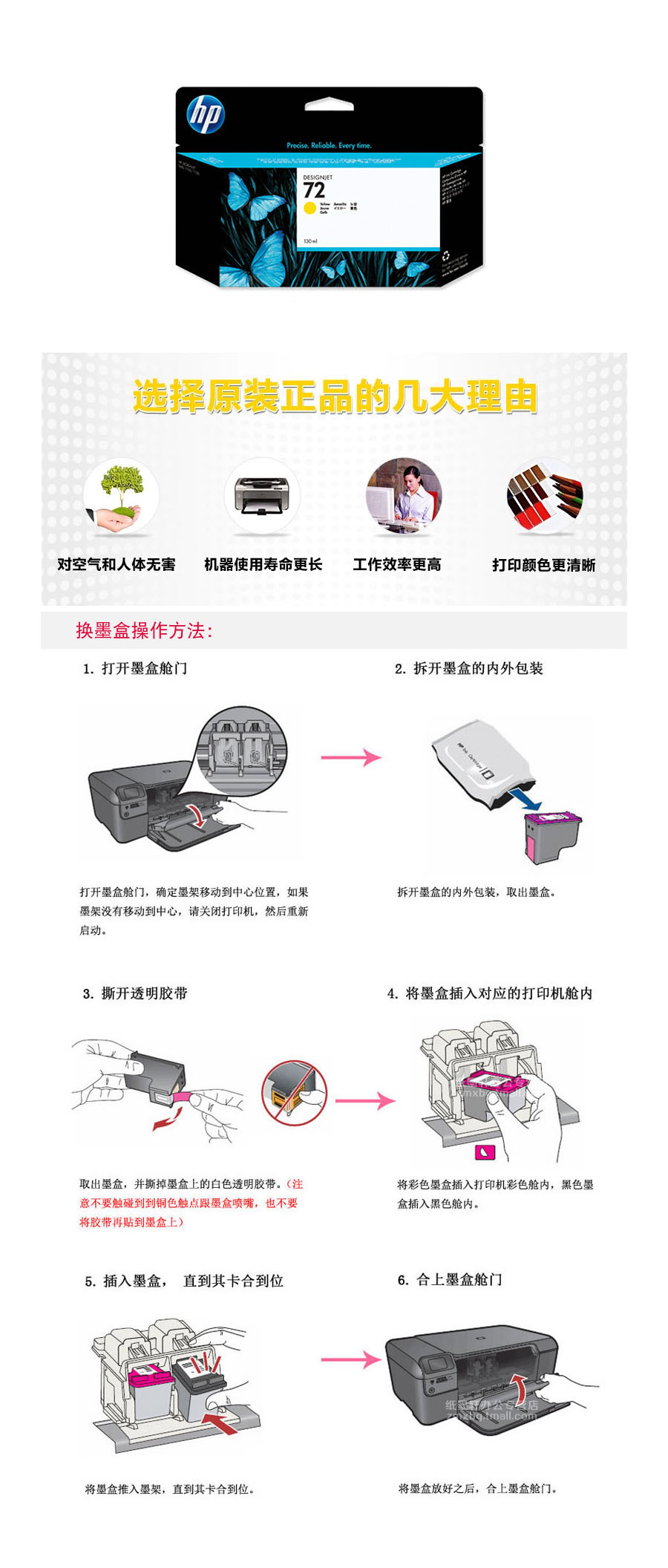 品名:惠普(HP) 墨盒 C9373A 72黄色