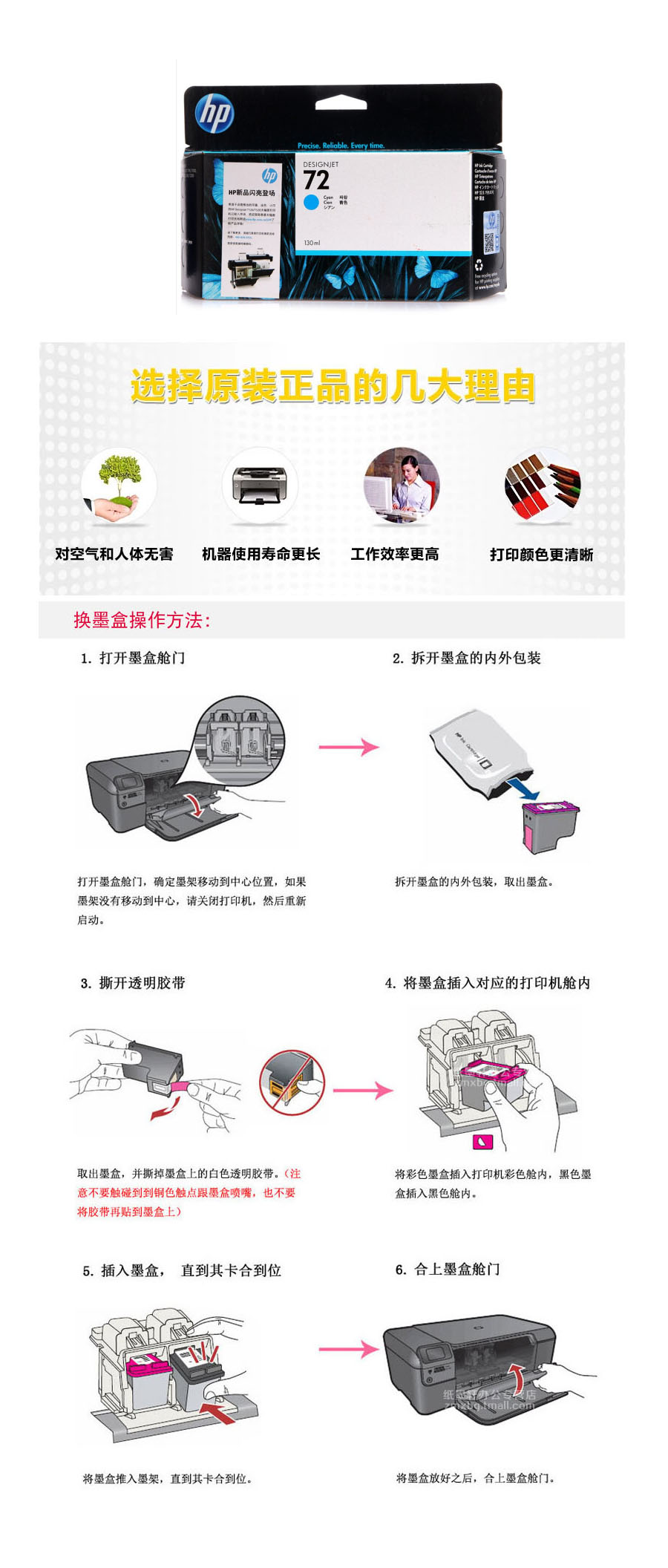 原装墨盒请妥善保管包装盒,如在使用截止日期以前出现问题,将连同包装盒一起返厂检测,核实后予以更换。(检测周期1-3个月)