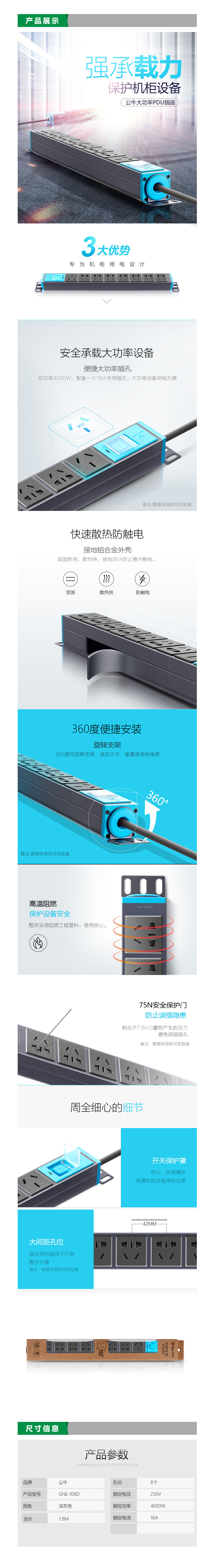 品名:公牛(BULL) 插座 GNE-108D 16A 大功率PDU机柜插座 8位总控全长1.8米
