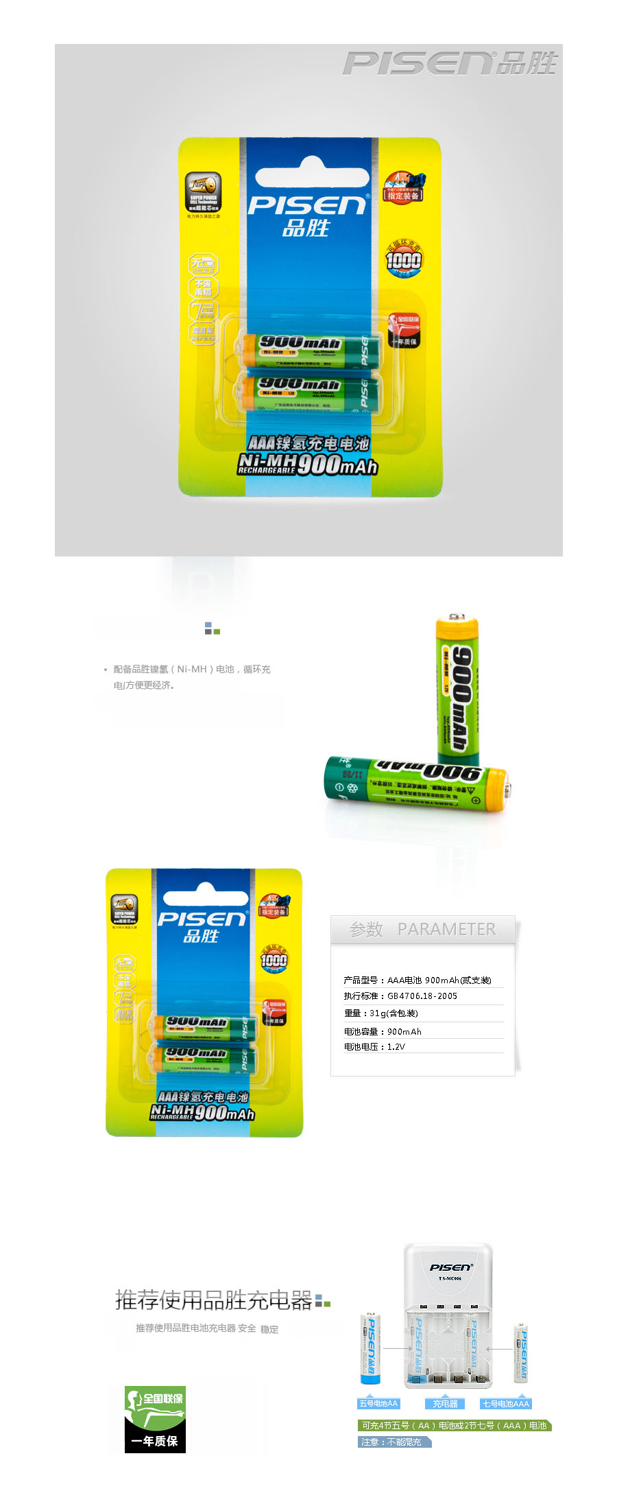 品名:品胜 充电电池 2节/卡 7号 镍氢电池 900mAh