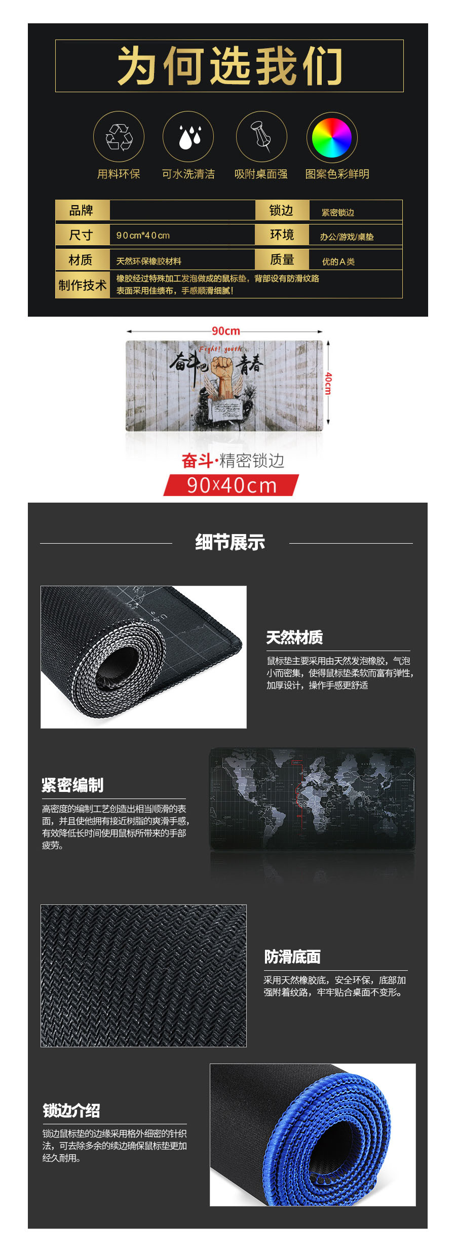 品名:国产 鼠标垫 游戏大号鼠标垫锁边 90*40cm 奋斗精密锁边