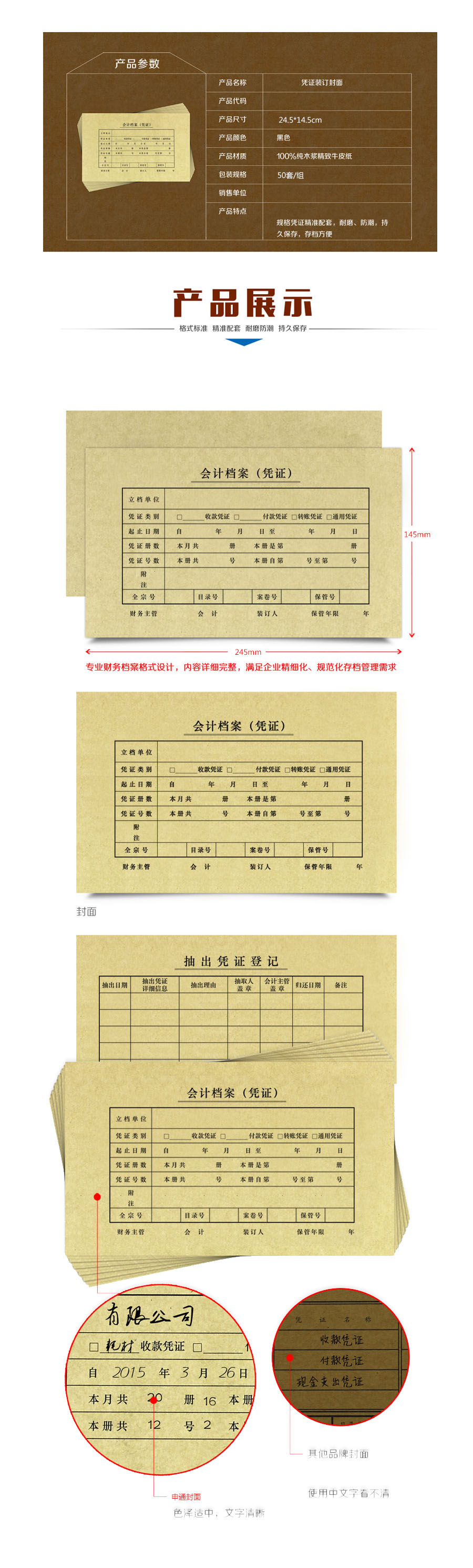 品名:申通纸品 会计凭证封面 14.5*24.5cm 50套/组