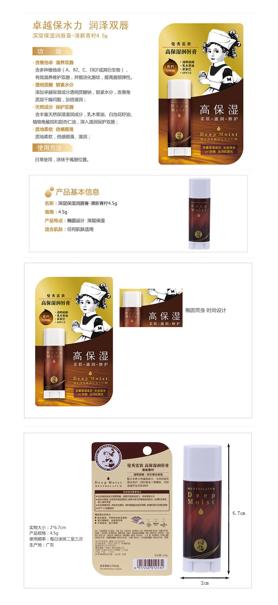 规格:深层保湿润唇膏-清新青柠4.5g(补水 保湿 润唇膏女)