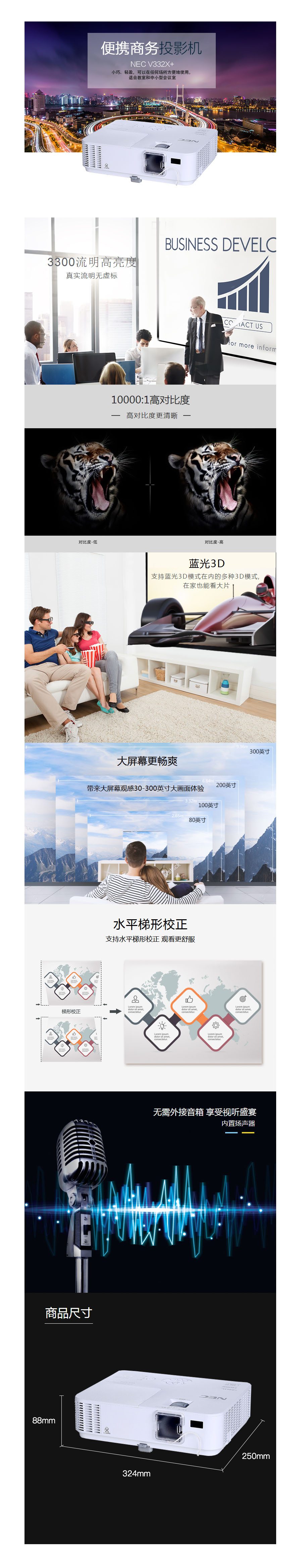 品名:NEC 投影仪 NP-V332X+ 3300流明 办公 投影机
