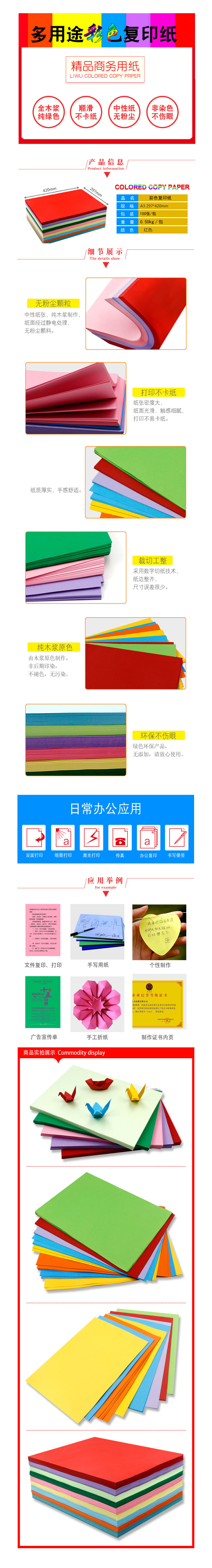 品名:国产 复印纸 大红色 A3 100张/包