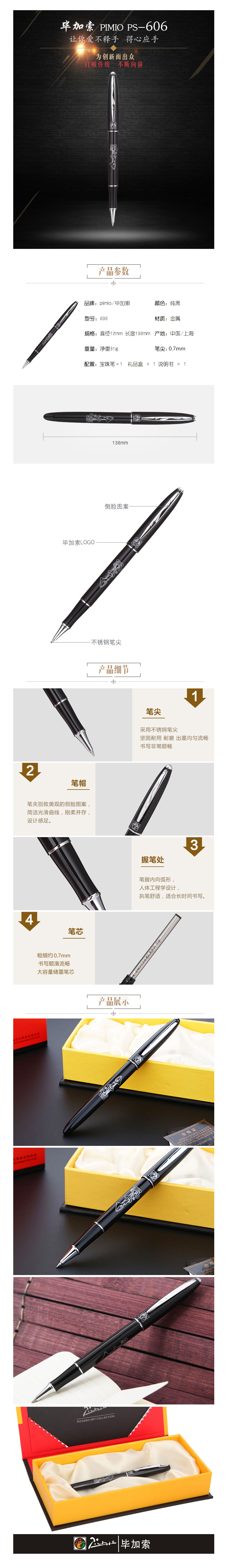 品名:毕加索(pimio) 签字笔 606 0.7mm 亮黑色 办公书写 铭志系列