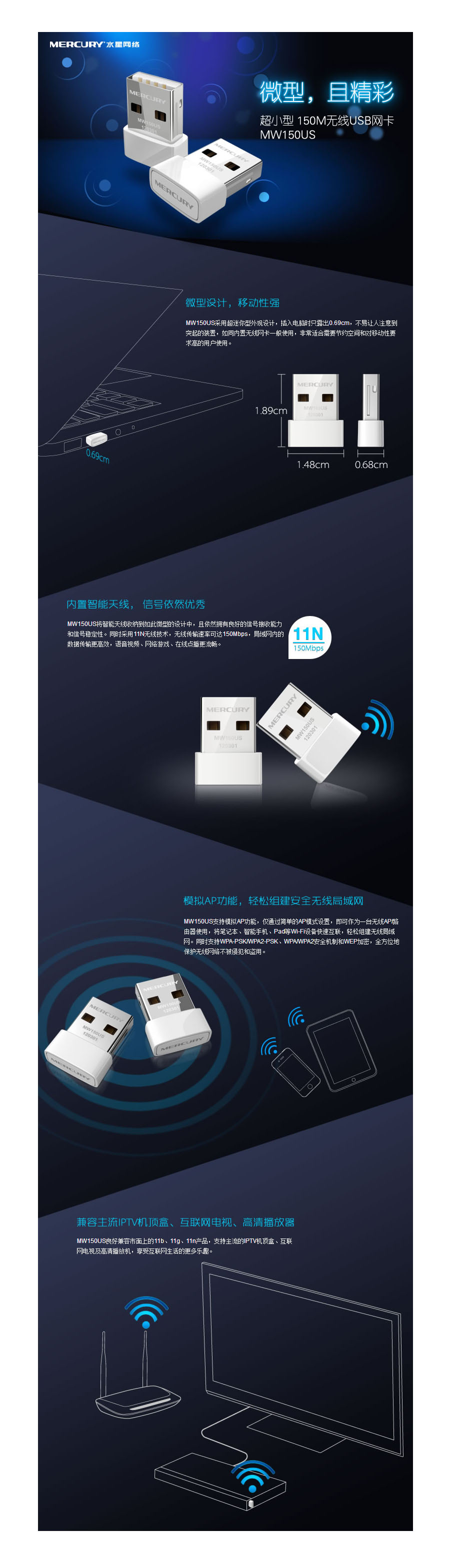 品名:水星(MERCURY) 无线网卡 MW150US USB无线网卡wifi接收器台式机笔记本发射