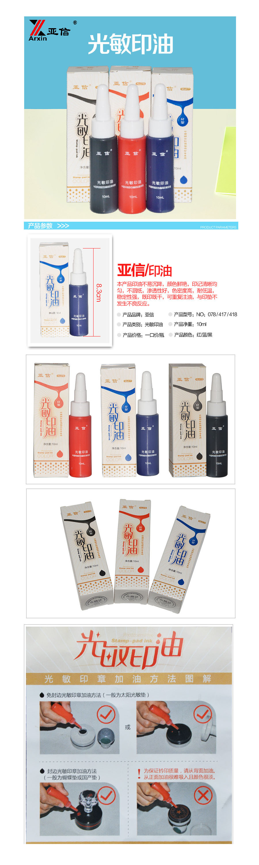 品名:亚信 印油 078 10ml 蓝色 光敏