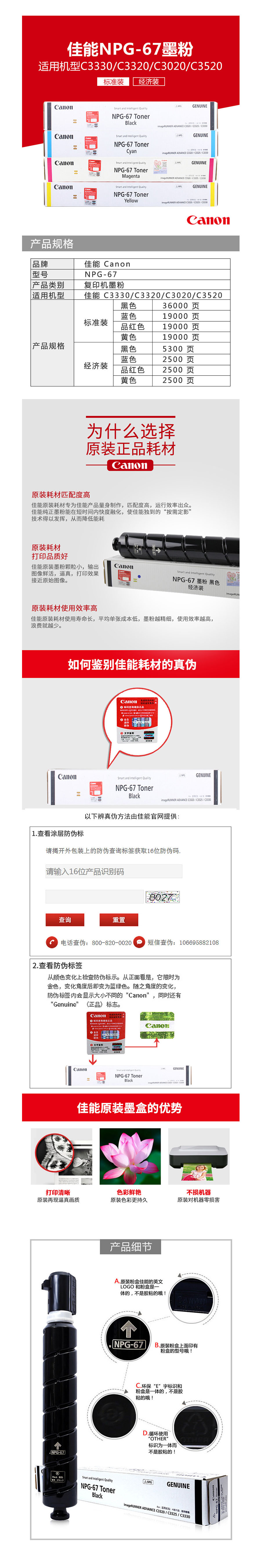 品名:佳能(Canon) 墨粉 NPG-67 红色 大容量(适用C3330/C3320/C3020/C3520)