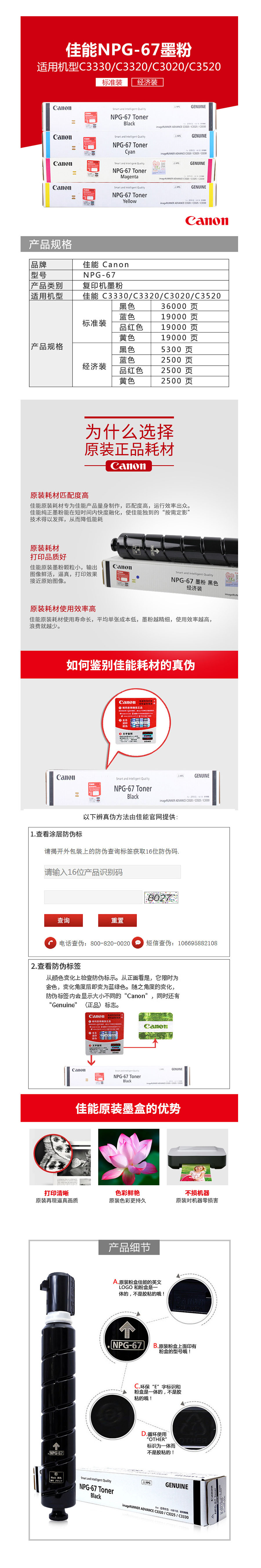 品名:佳能(Canon) 墨粉 NPG-67 青色 大容量 (适用C3330/C3320/C3020/C3520)