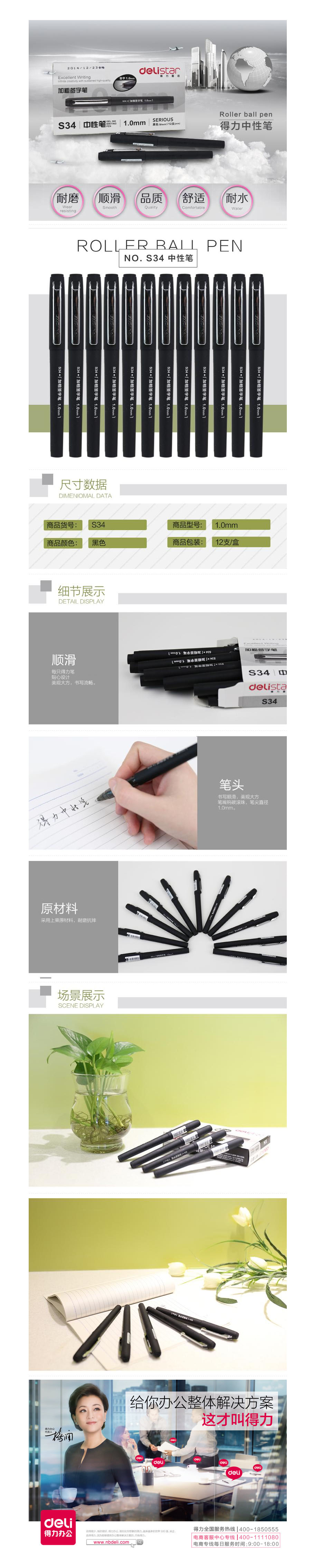 品名:得力(deli) 中性笔 S34 1.0mm 黑色 12支装 加粗