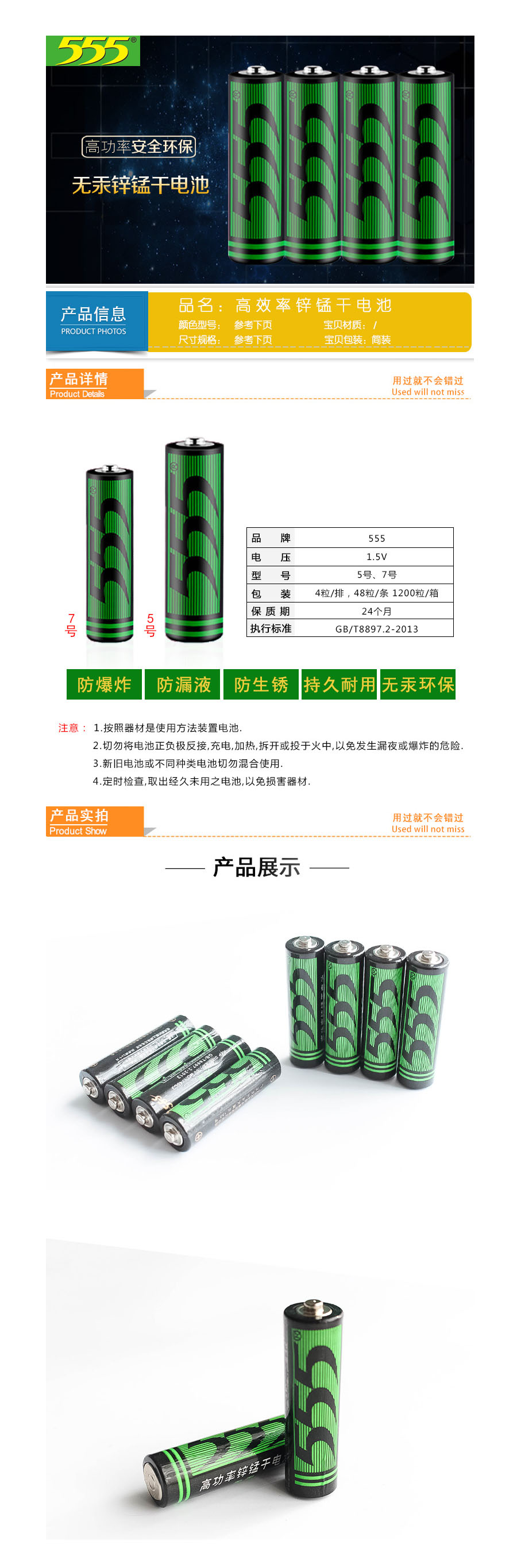 品名:555 电池 no.1745c3 4节/组 高功率锌锰干电池 碳性 5号