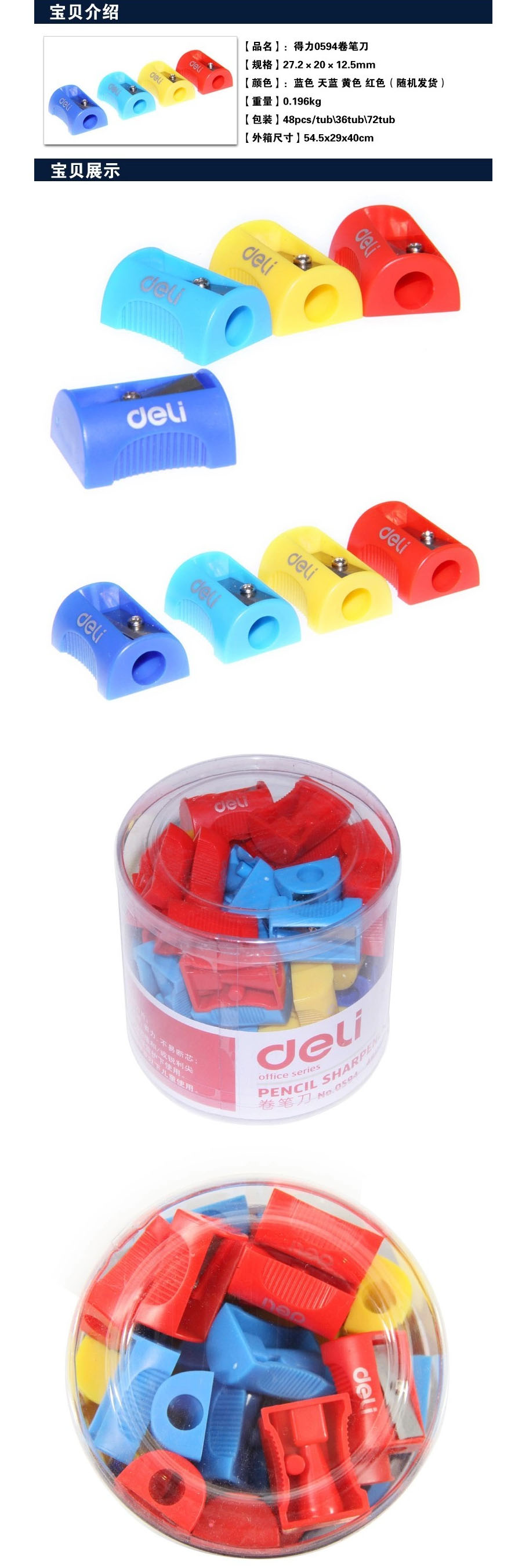 品名:得力(deli) 卷笔刀 0594 27.2×20.0×12.5mm 48个/筒