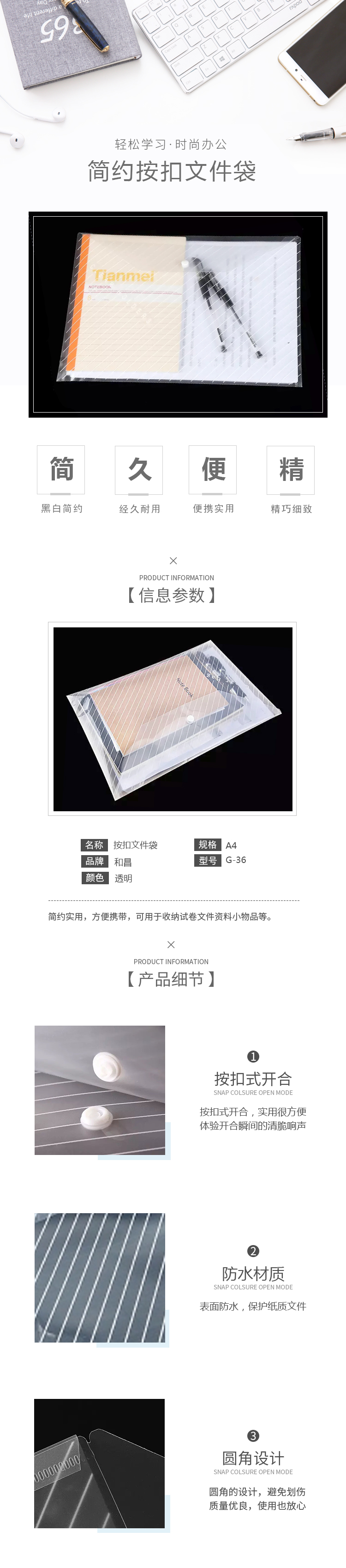 主要规格:A4 按扣 透明