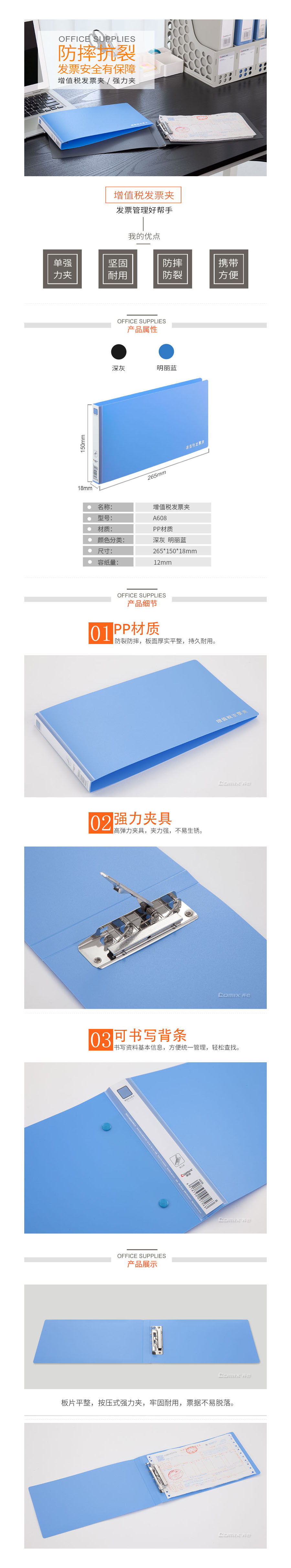 品名:齐心(COMIX) 票据夹 A608 强力夹 增值税发票夹 26.5*15cm