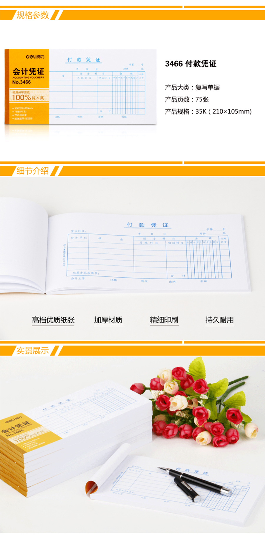 品名:得力(deli) 付款凭证 3466 75张210*105mm