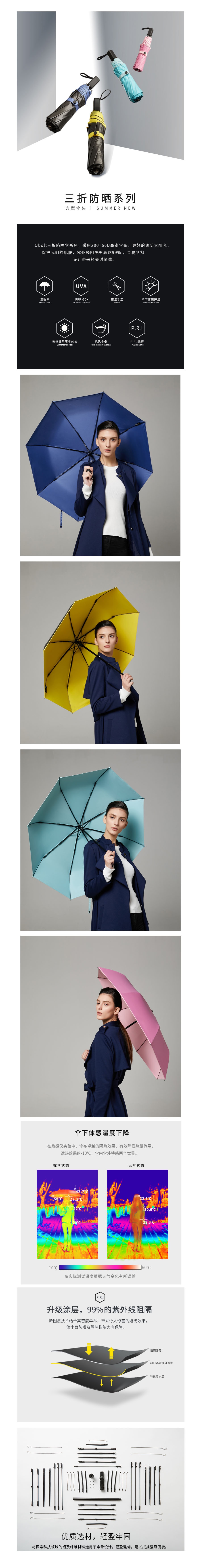 品名:obolts 太阳伞 防紫外线 超强防晒 三折简约 颜色随机