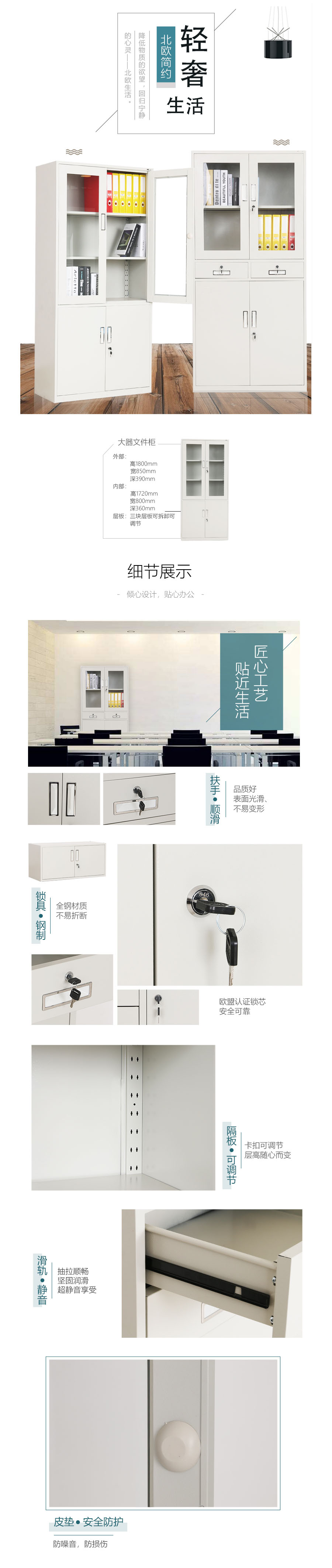 规格:1800*850*390mm 办公柜 带锁玻璃