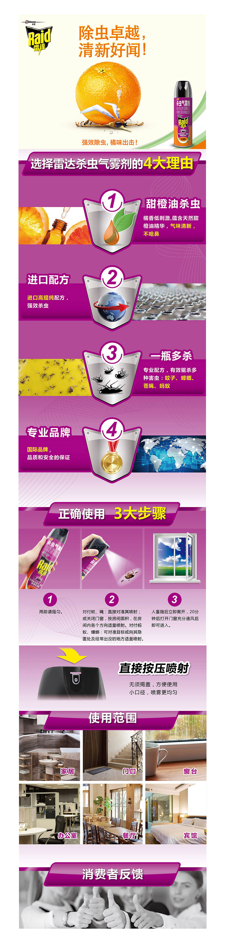雷达 杀虫气雾剂 550ml 香甜橙花 灭蟑螂 杀蚂蚁 杀苍蝇 杀飞虫 杀虫水 除虫剂