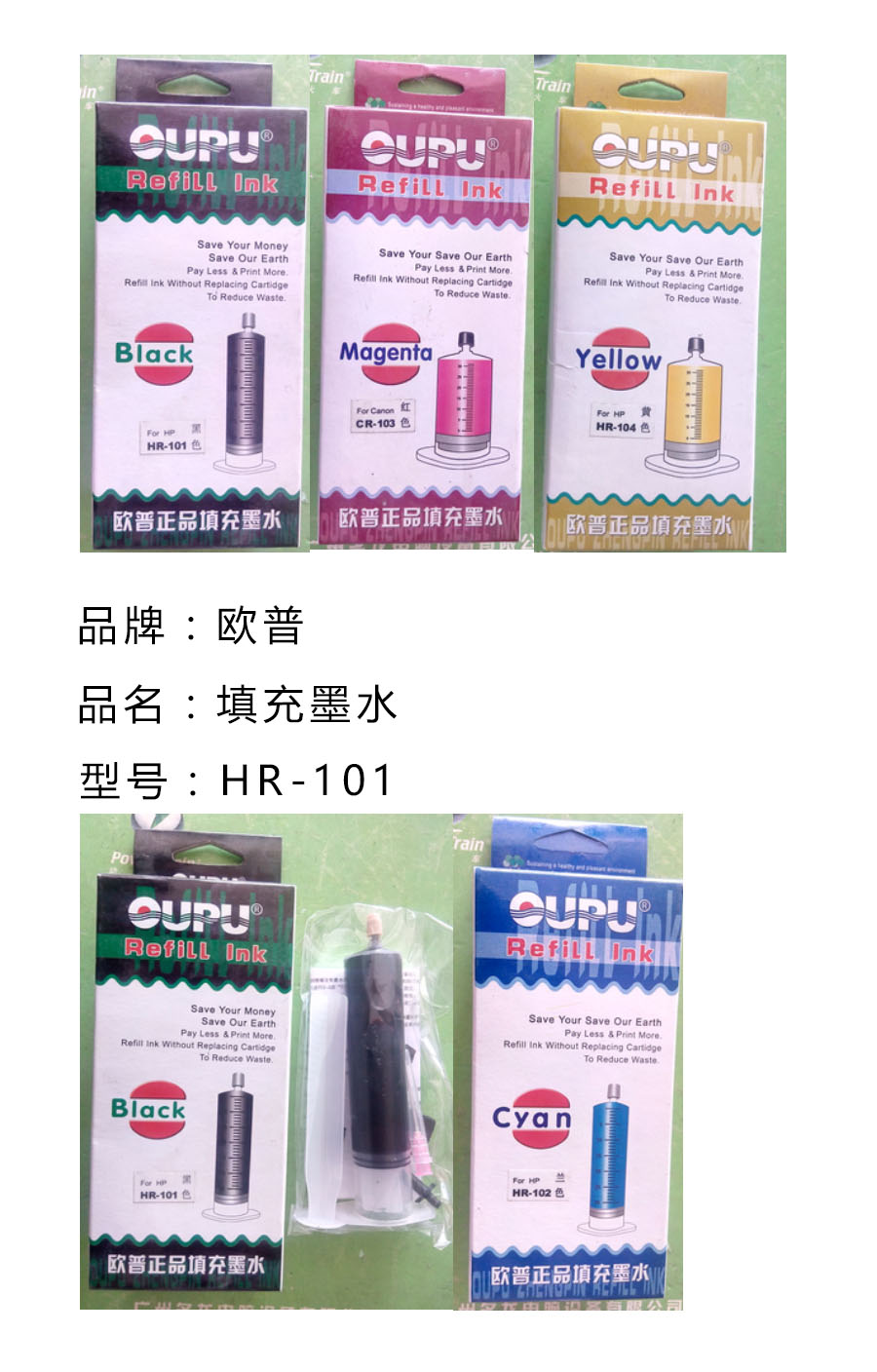 品名:欧普 补充墨水 HR-101 适用于 惠普 816 墨盒