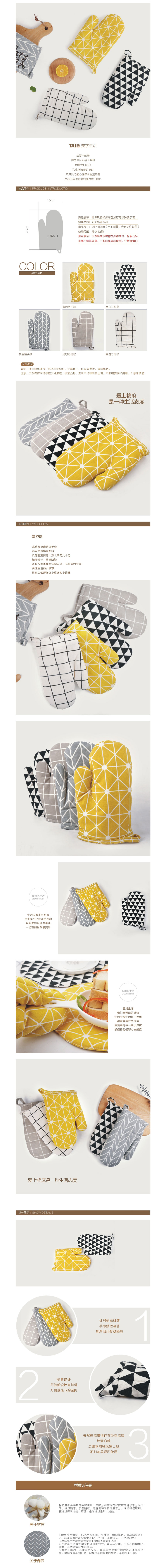 品名:手套 白色方格款 隔热 加厚 棉麻