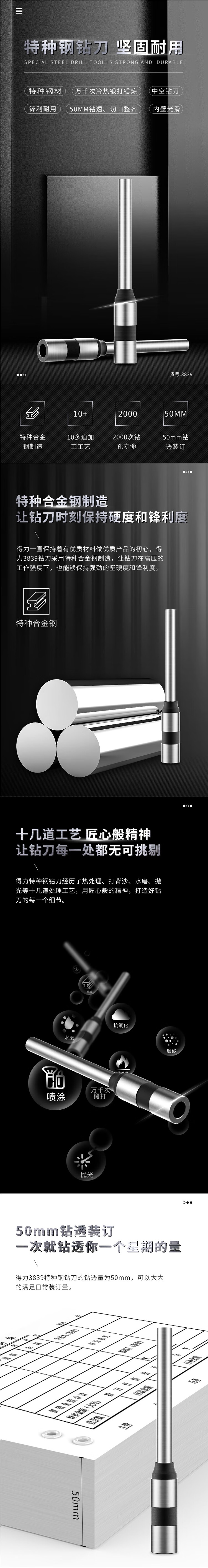 得力 钻刀 3839 φ6.0*50mm 适用于3880 14600 14601 33480财务装订机