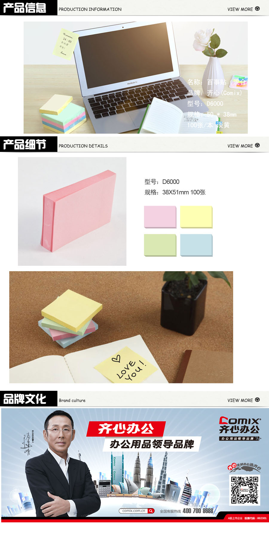 品名:齐心(Comix) 易事贴 D6000 50 * 38mm 100张/本 淡黄
