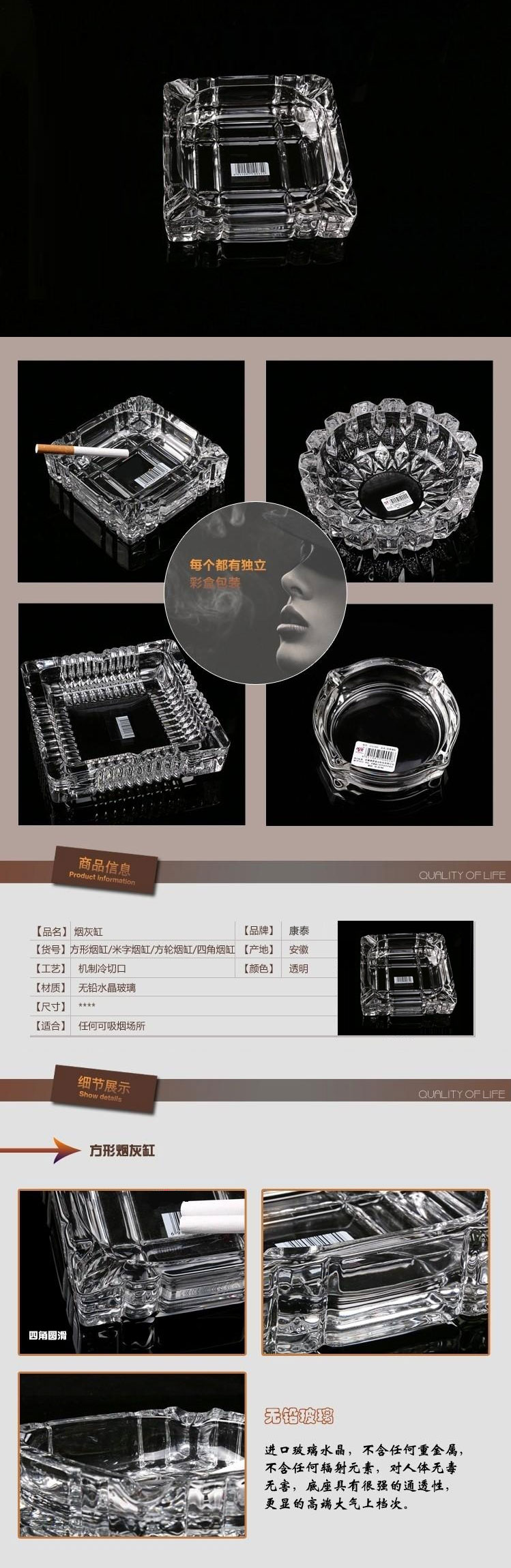品名:康泰 烟灰缸 7101 16cm 大方缸