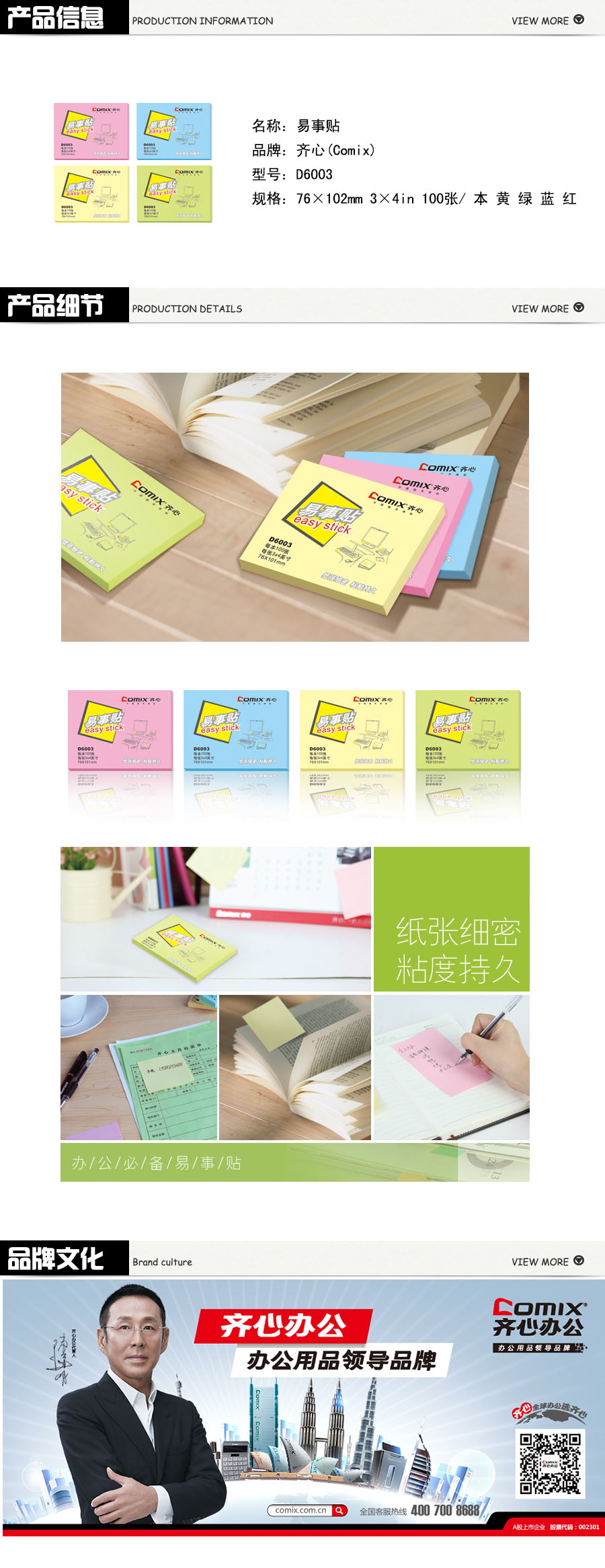 纸张细密、粘贴持久!精选全木浆原纸,色泽温和;随心粘贴,轻松剥离,不留残胶,不损伤文件。