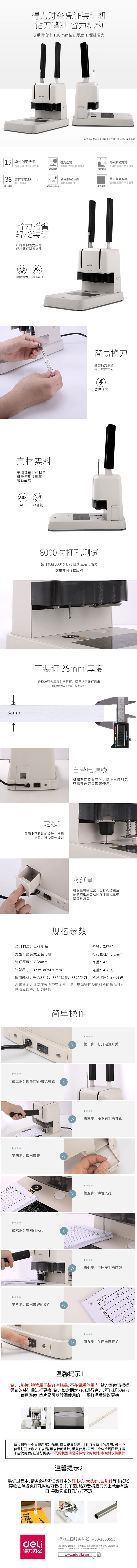 品名:得力(deli) 财务装订机 3876A 双柄 手动 打孔装订厚度≤38mm