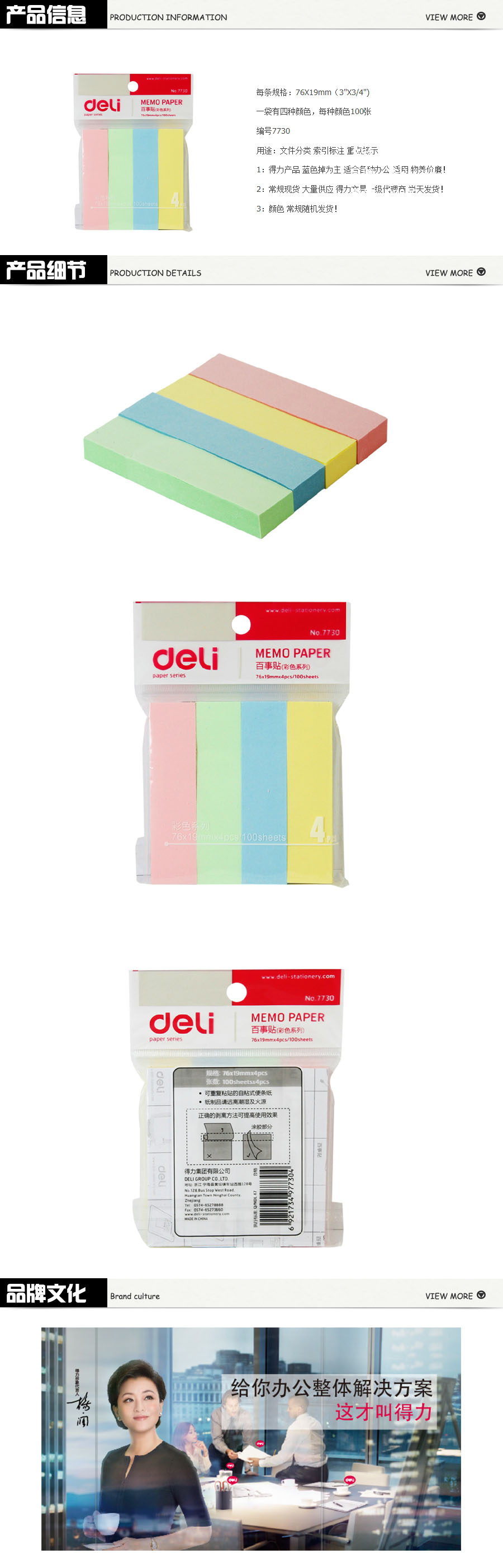 品名:得力(deli) 易事贴 7730 76*19mm 4本/袋 100张/本